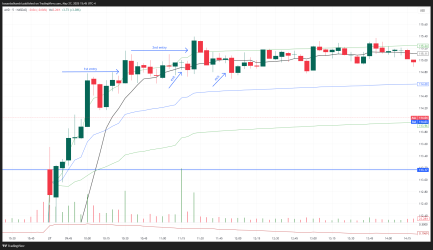 Day trade in #QBTS from today, entry in5/ 10,15h/ and exit at 11.05 at testing couple of times the high of the day. Then entry again on next candle and exit at 12.05h using TrendPM.
